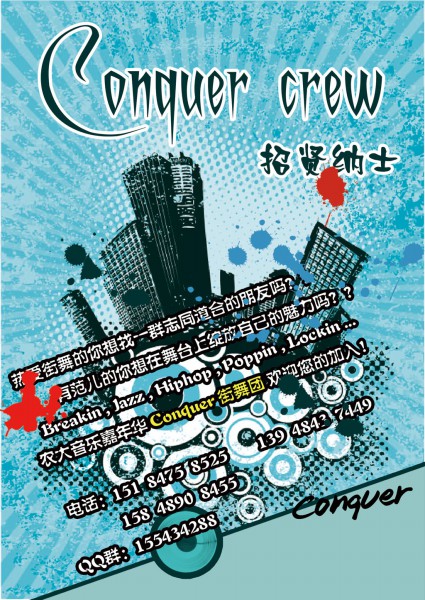 Conquer Crew是内蒙古农业大学最具实力的街舞团体。Conquer Crew 成立于2010年,Conquer中文意义为:征服,意在征服所有舞者,成为农大街舞最强团体!我们的口号是:征服赋予希望,Conquer就是力量!